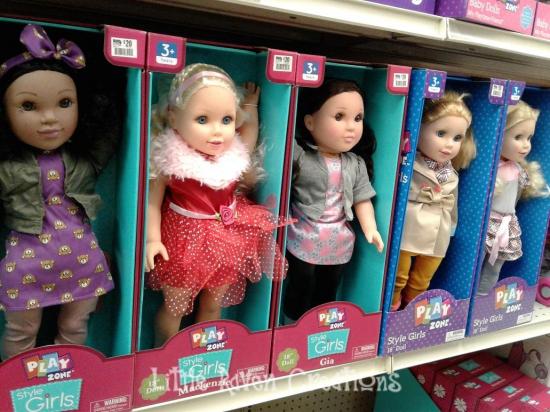 I dropped into a couple of stores last night to check on some of the new 14" dolls springing up this season. I still haunt Big Lots from time to time looking for new 18" Style Girls and found a fairly nice stock of them, including HTF Mira and Gia. Wow, I hope they are there for a while yet! I love these cute, affordable 18" dolls.