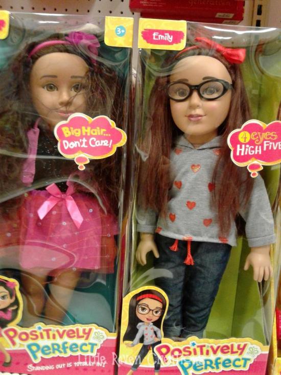 I couldn't find Glitter Girls though! I looked up and down round and round; didn't see them. Disappointing. But I did find some of the new, rebooted Positively Perfect dolls there. I've been on a new PP kick, so it was great seeing them there up close. They only had the Latina dolls, Sofia and Emily, but it was the first time I have ever seen any of the non AA dolls in person. I was surprised at how cute they were, especially Emily. Sofia had Big Hair and Didn't Care that it was in her face, but I couldn't get a good look at her that way :) so I had my eye on Emily. I wish I could have seen the new Caucasian Positively Perfect Divah dolls too. Maybe they will pop in by the holidays.