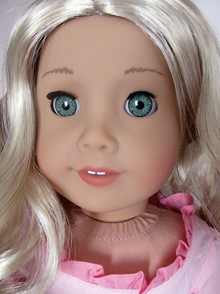 Caroline's eyes are the most unique of all the American Girls dolls I have seen. The color doesn't translate as well to my photos, but its a unique shade somewhere between blue, green, and gray.
